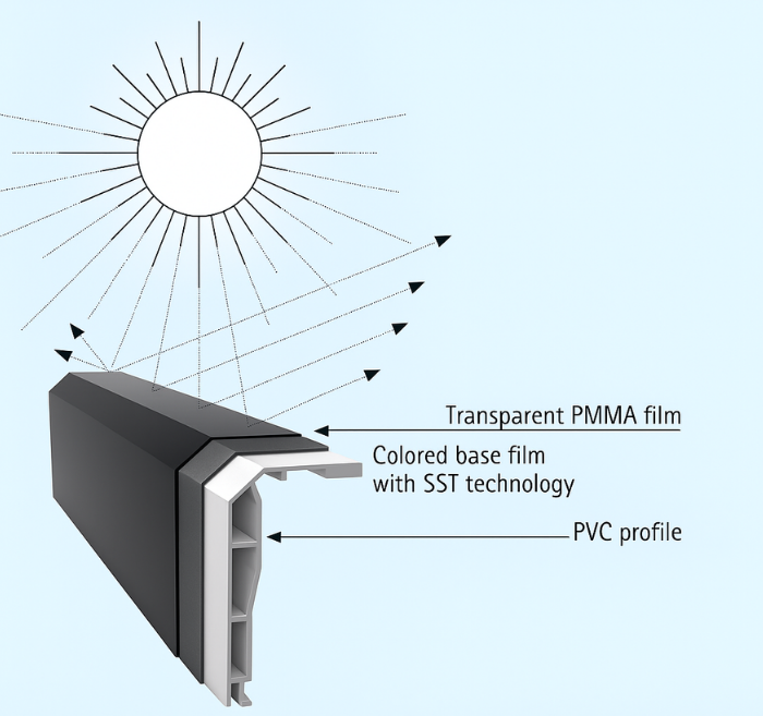 To provide even greater protection, our windows feature Solar Shield Technology — an innovation that incorporates special pigments into the surface film. These pigments reflect the infrared component of sunlight, helping to reduce heat buildup in PVC profiles.