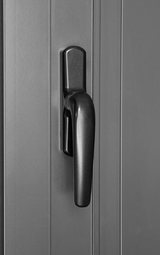 - Chiusura standard con spagnoletta in zama preverniciata nero e fermo di sicurezza disponibile solo per le tipologie a 2 ante.