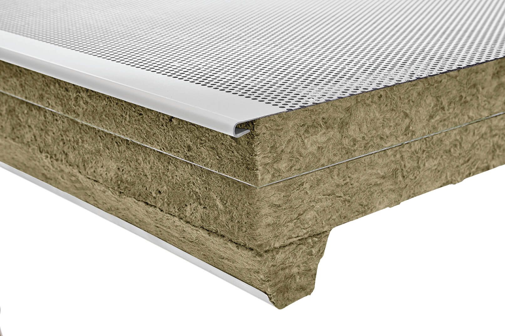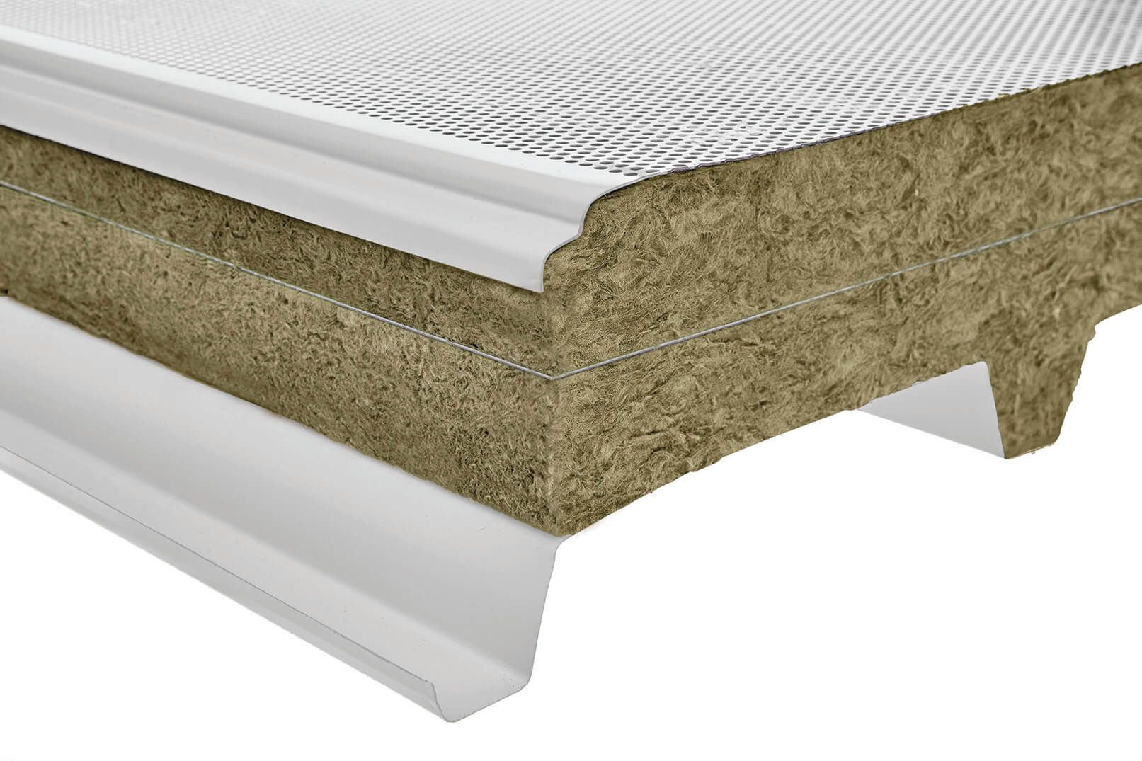 La lamiera esterna si presenta con un profilo di n.5 greche di altezza 40mm e passo 250mm di interasse. Le greche sono riempite con listelli sagomati in lana minerale aventi dimensioni Binf=60 mm e Bsup=30 mm