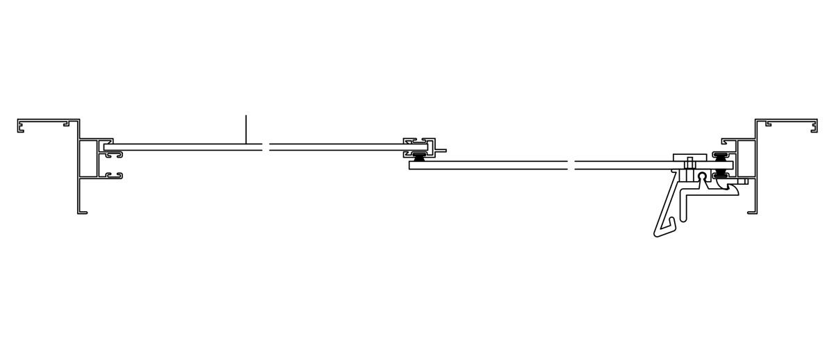 Sistema di apertura del vetro mobile costituito da guida in nylon colore nero inserita nella parte inferiore del telaio.
