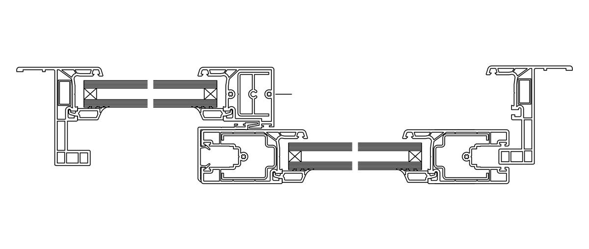 Sistema di tenuta con guarnizioni coestruse in EPDM su anta e telaio e con guarnizioni a spazzola su anta.